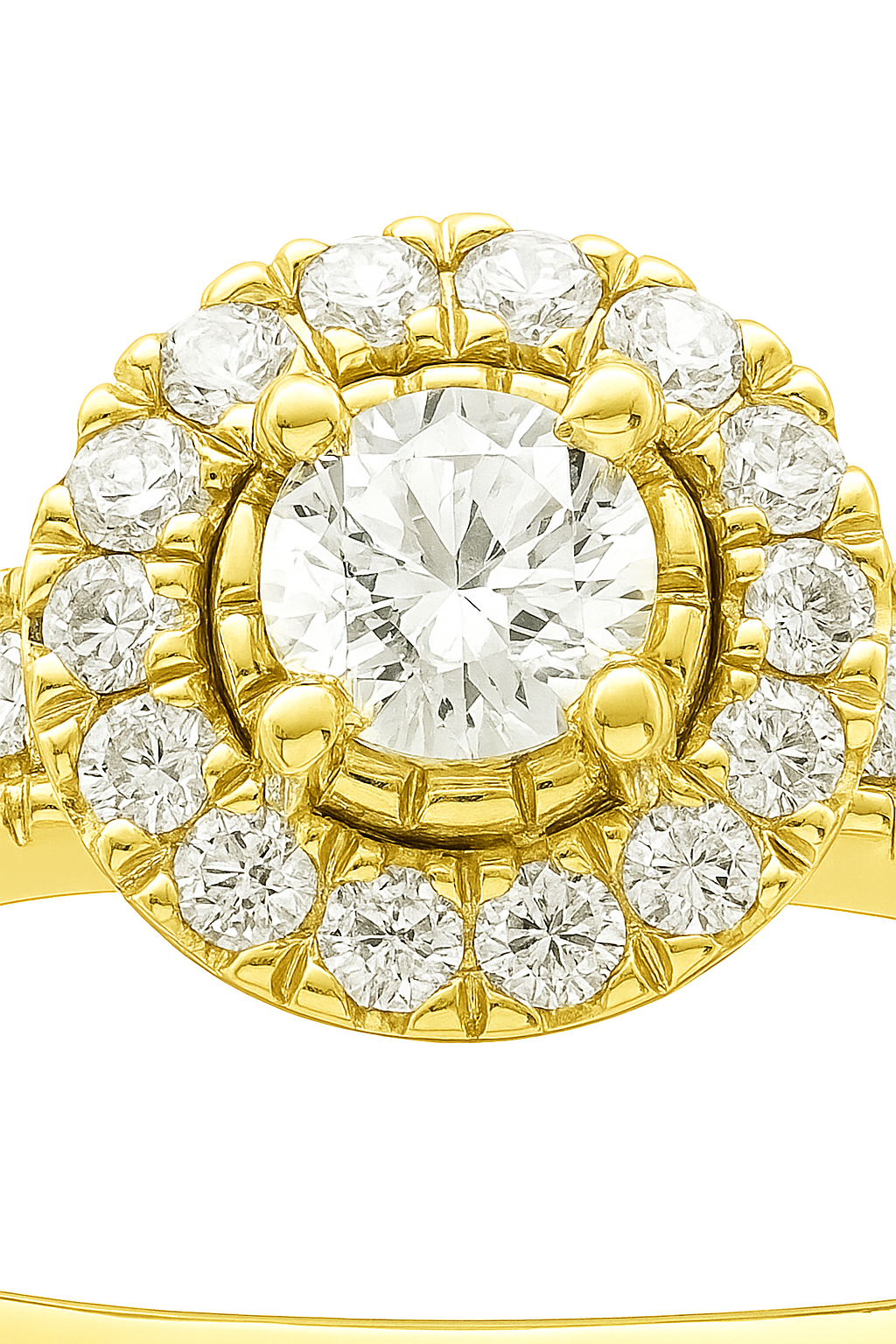 El Anillo Seraphine es una joya diseñada en Oro de 18k para reinas modernas. Su piedra central, rodeada por un halo de gemas y medio cintillo con destellos infinitos, crea un brillo inigualable que captura todas las miradas.