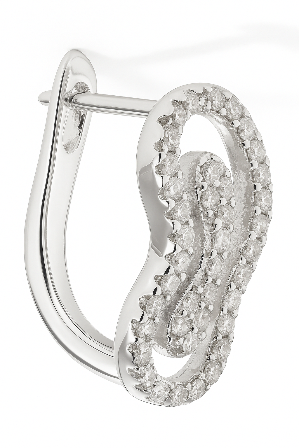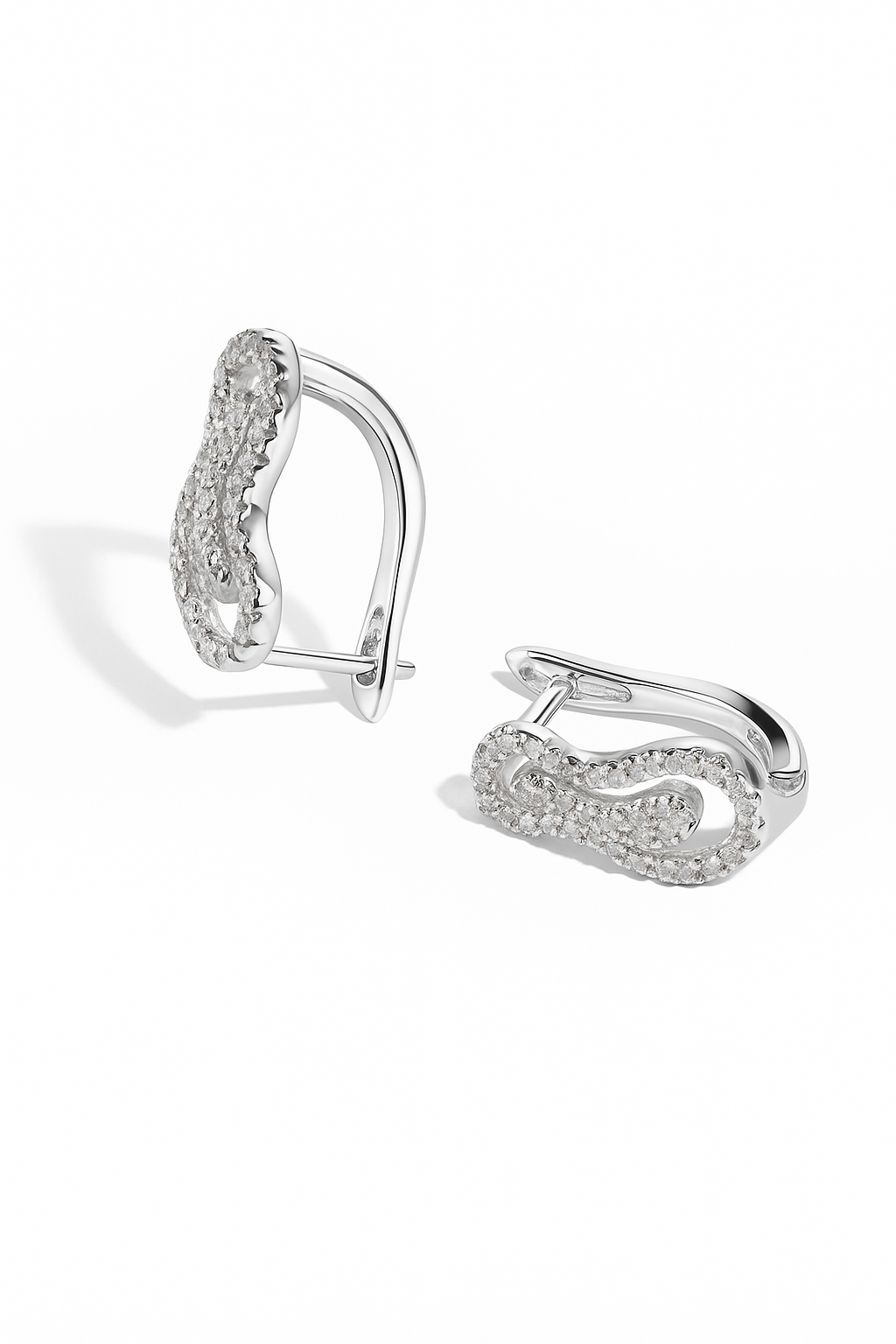 Los Aros Modelo Audra están elaborados en Plata 925, con un diseño moderno de líneas suaves y curvas entrelazadas que evocan movimiento y sofisticación.