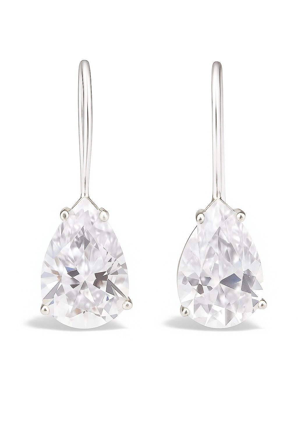 Los Aros Modelo Aveline están elaborados en Plata 925, con delicados circones engastados en forma de lágrima que capturan la luz desde cada ángulo.