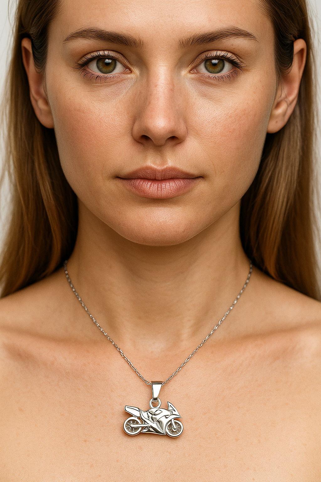 El Colgante de Motocicleta en Plata 925 representa la libertad, la velocidad y el espíritu aventurero.