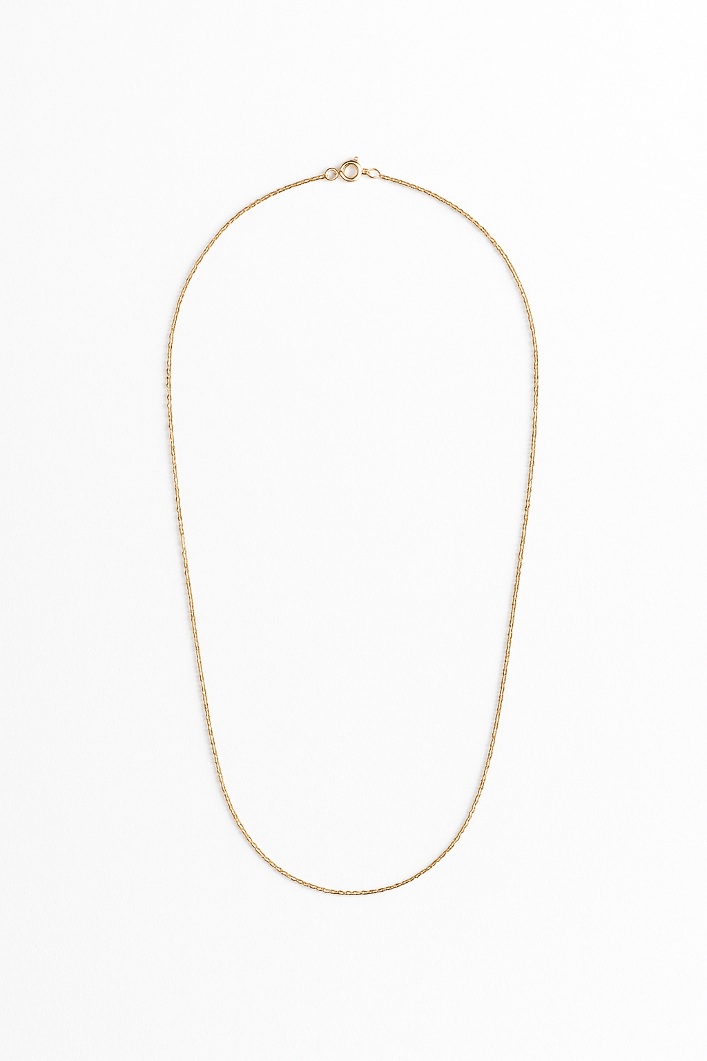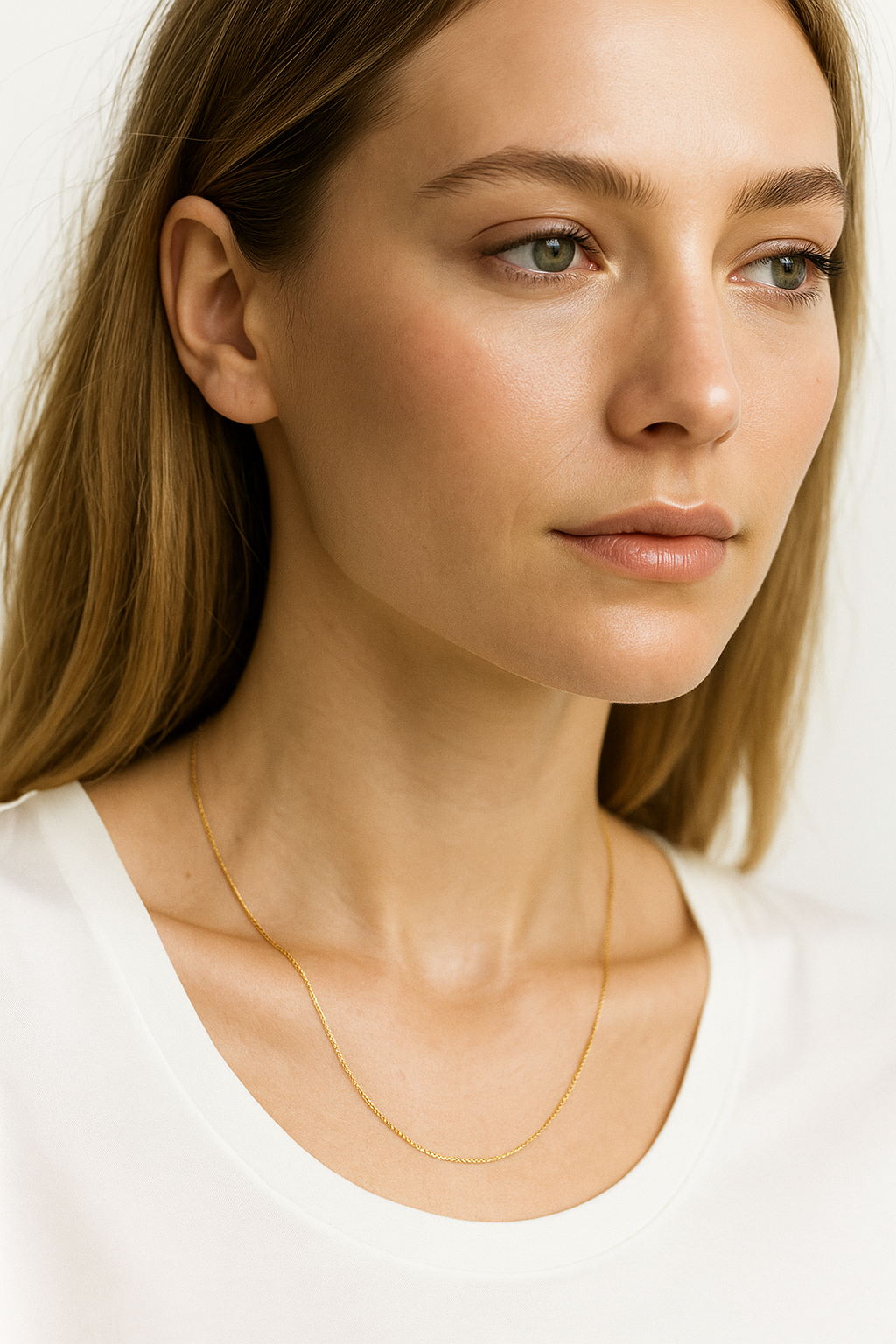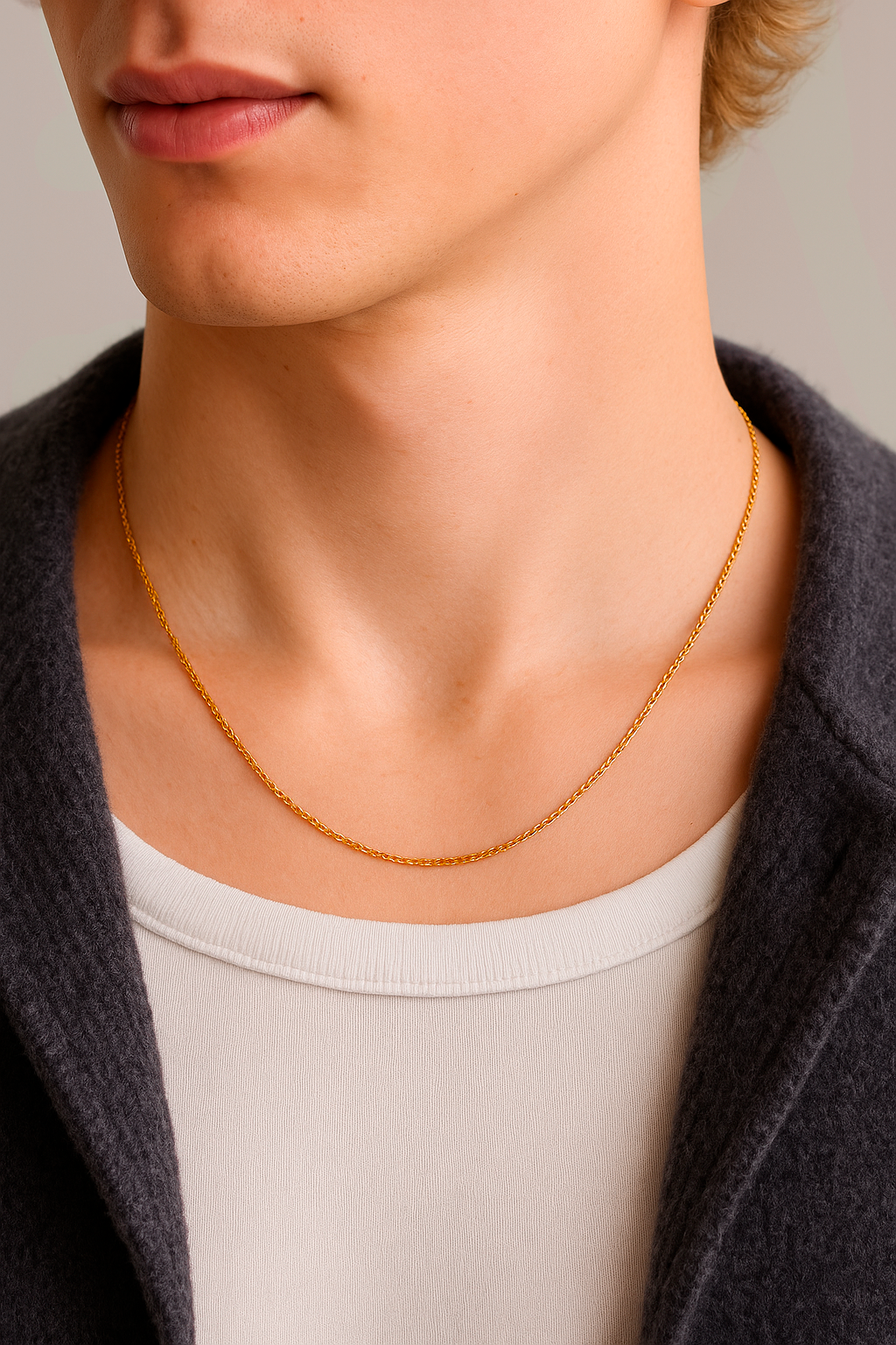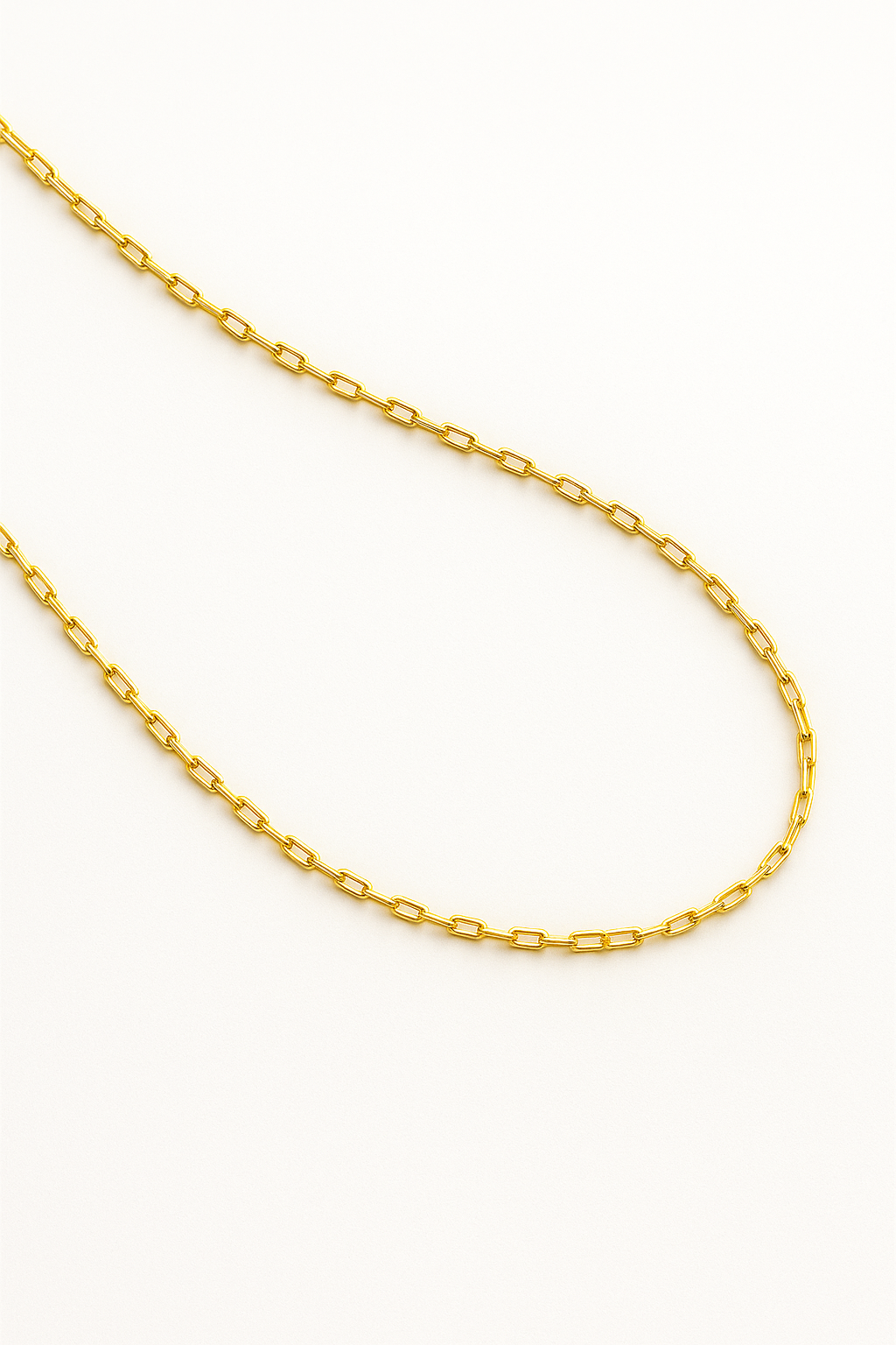 Elaborada en Oro de 18k y un largo de 45 cms, sus eslabones aportan una textura contemporánea y sofisticada, ideal para acompañar cualquier look —solo o en capas. Una pieza que refleja equilibrio, estilo y autenticidad.