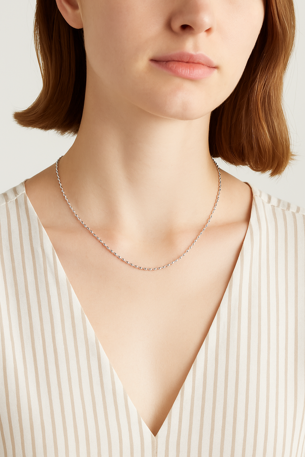 Con un largo de 45 cm, es perfecta para llevar como un básico sofisticado o para combinar con dijes y crear un estilo único. Su carácter unisex la convierte en una pieza ideal tanto para hombres como para mujeres, acompañando cualquier ocasión con discreta elegancia.