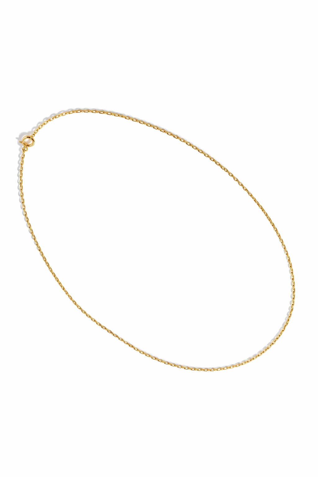 La gargantilla Oriana es una joya esencial, creada para acompañarte todos los días con elegancia y sutileza. Fabricada en Oro nacional de 18 Kt, su eslabonado de 43 cms se adapta perfectamente al cuello, aportando un brillo cálido y sofisticado.