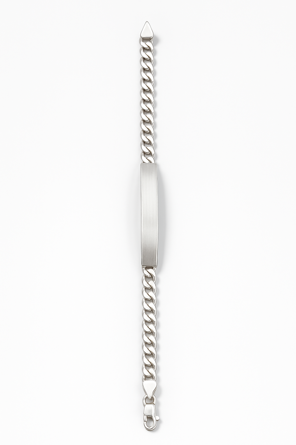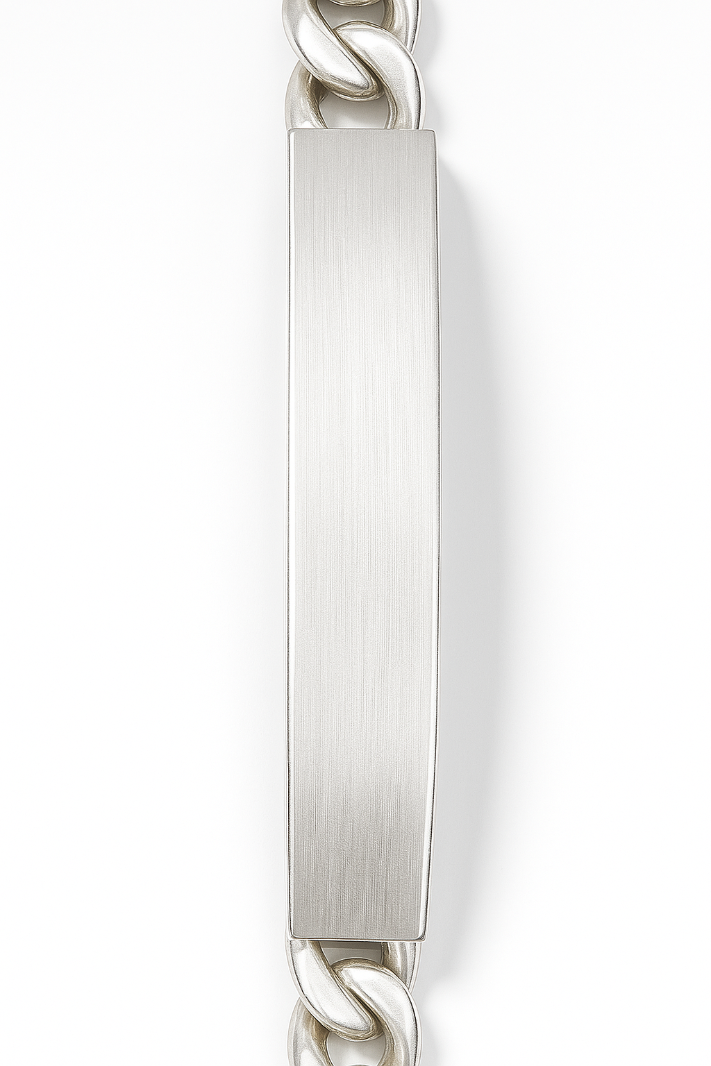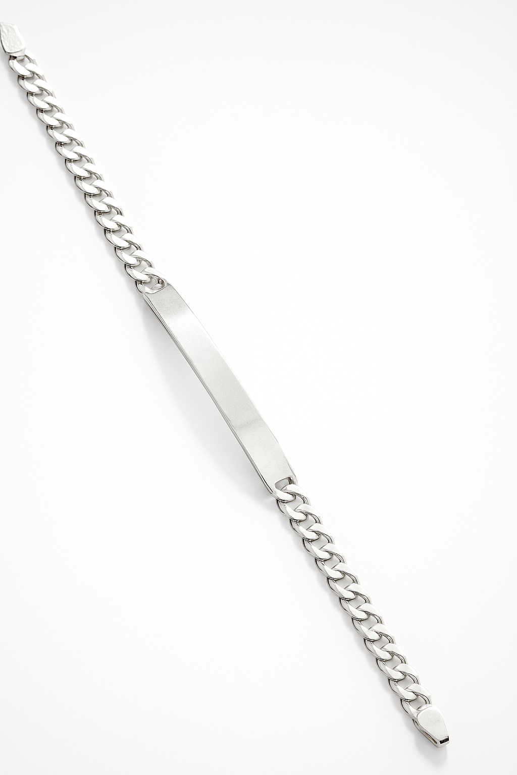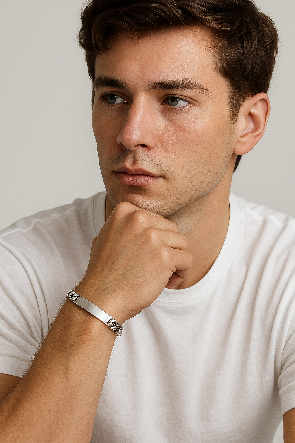 Su estructura sólida y su brillo sutil la convierten en una pieza que perdura en el tiempo, perfecta para llevar un nombre, una fecha o un símbolo especial.