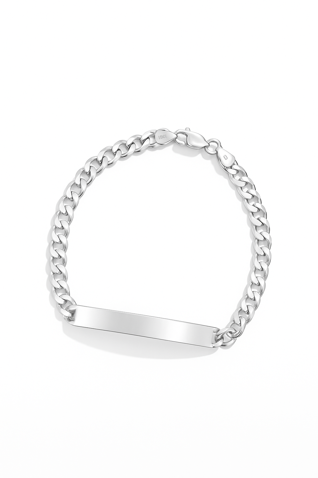 La Pulsera Darel combina el carácter de la Plata 925 con un diseño clásico de eslabones gruesos y placa grabable.