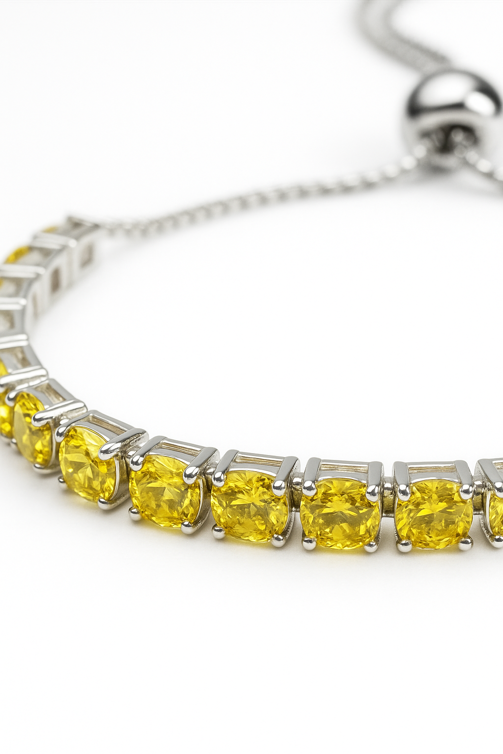 La Pulsera Lysandra irradia energía dorada en cada destello, con circones amarillos engastados con precisión sobre plata 925, evocan la calidez del sol y la alegría de los días luminosos.